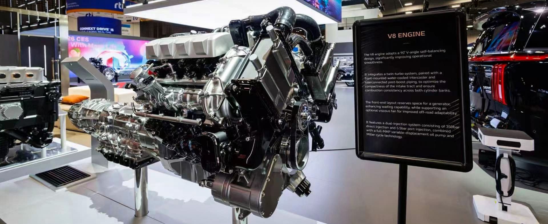 Z kolei podczas targów CES 2026 w Las Vegas (pierwotnie Consumer Electronics Show, obecnie coraz bardziej Consumer Everything Show), na stoisku GWM przedstawiono nowy silnik chińskiego producenta – widlastą ósemkę. Jednostka o pojemności skokowej czterech litrów i kącie rozwarcia bloków cylindrów wynoszącym 90°, zaprezentowana została razem z automatyczną skrzynią biegów o dziewięciu przełożeniach.